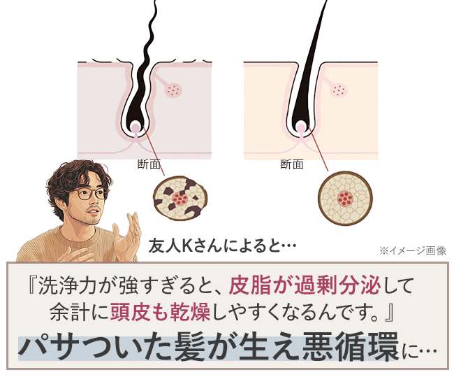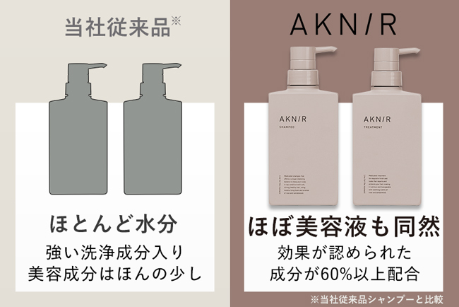 ※アクニーと当社従来品のシャンプーを使用し、皮脂汚れに見立てたワセリンを洗浄した比較検証