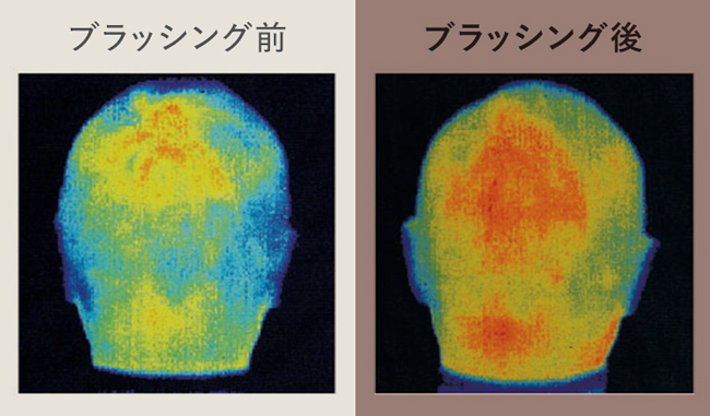 ※製造元エス・ハート・エス社サイトより提供。シャンプーブラシのブラッシングによる皮膚温度前後比較※100回ブラッシング後